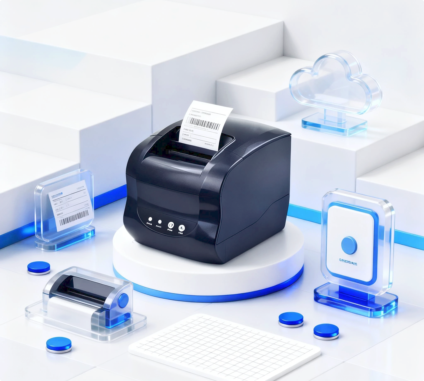 专业级高清打印,兼容多种纸宽与模式。四键简化操作,轻松应对各类标签与票据打印需求