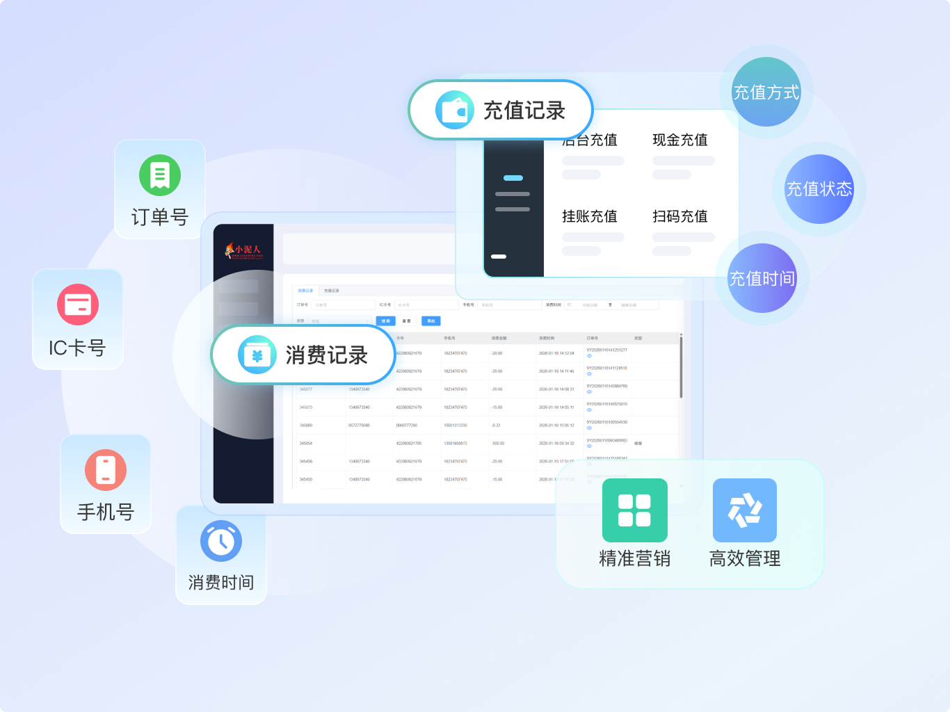 通过SaaS系统各个模块,把经营数据进行展示和分析,为高层提供辅助决策及为运营人员提供基础数据和分析支持