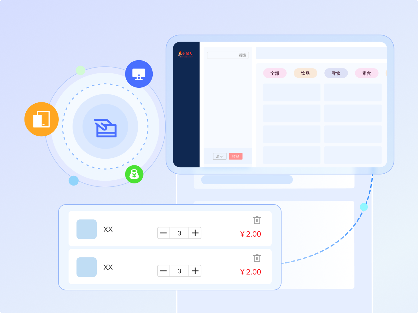 可灵活设置分类、售价、分账规则及会员卡关联,销售后系统自动结算,简化对账