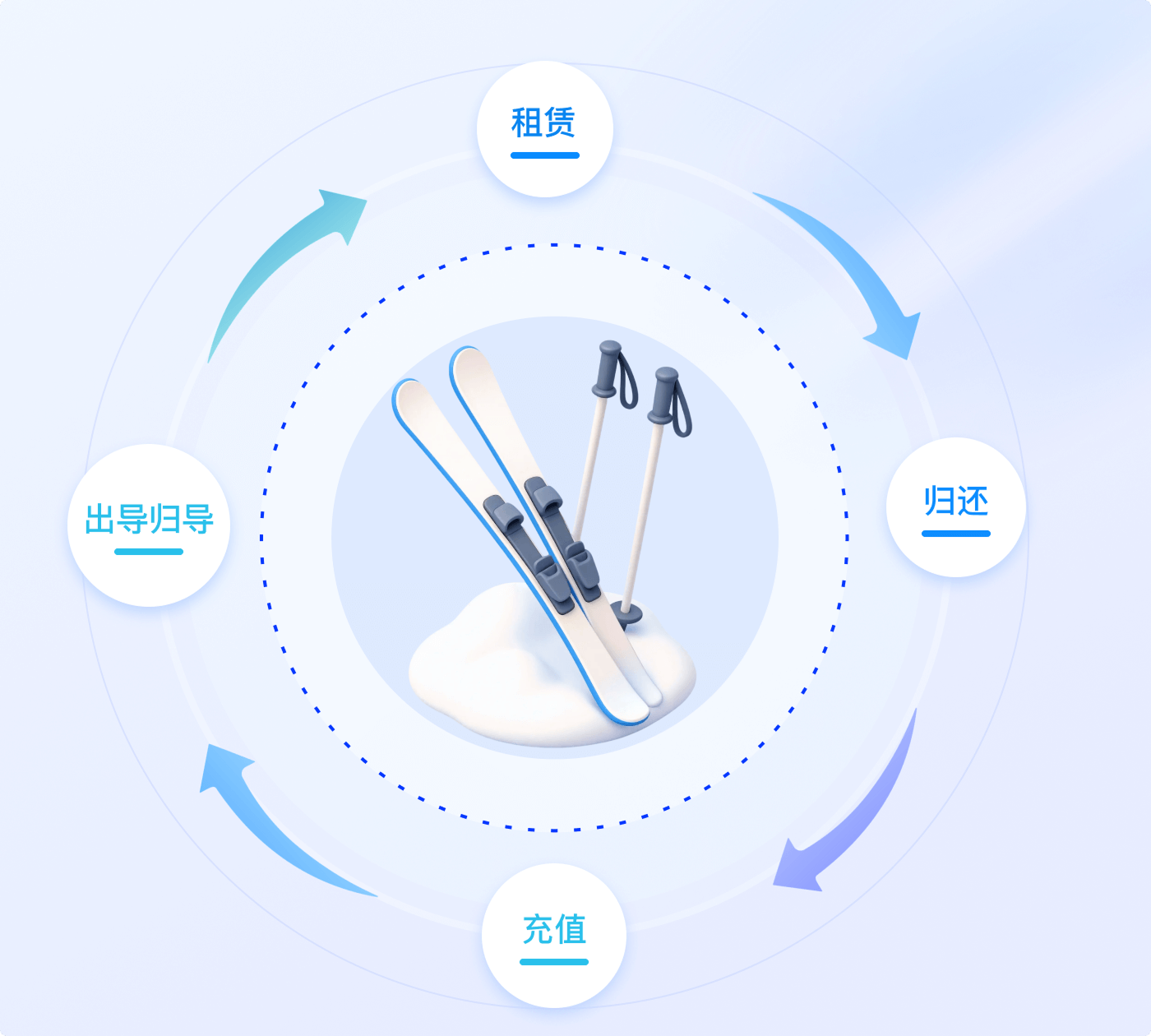 手持机可实现雪具租赁、归还,充值、出导归导,实现快租快还,即租即用,即买即走
