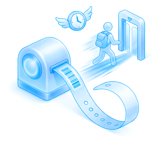 解决假票、倒票、一票多用等票务漏洞。高清打印确保腕带上的二维码/条码清晰、难以复制,实现入园、消费、储物等“一码通行”,安全可靠。